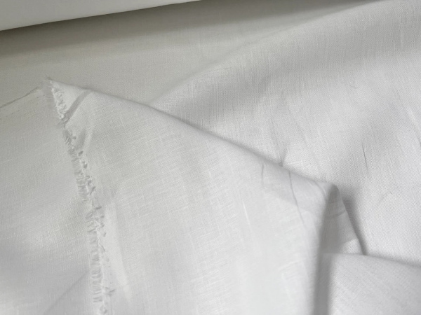 Представляем плотную льняную ткань белого оттенка. Этот материал, выполненный из 100% льна, отличается высокой прочностью и естественной текстурой.